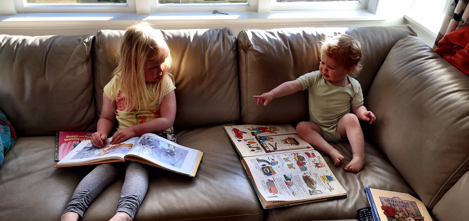 Iris loves copying big sister. In this instance it is lovely to see them both reading books.