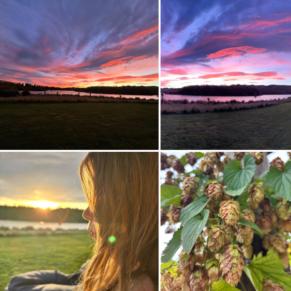 Stunning sky before sunrise and discovered hops growing around the house.