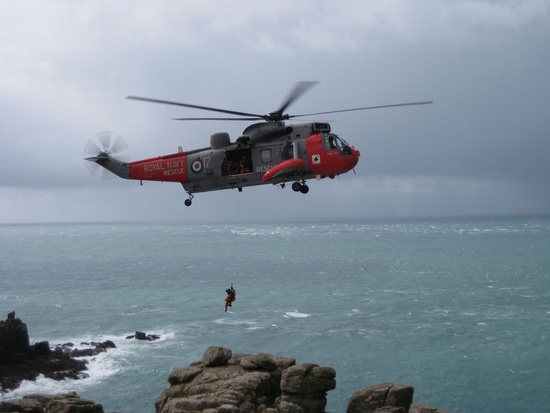 The highlight of Lands End - a rescue helicopter strutting its stuff!