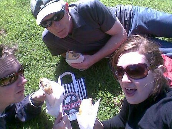 Enjoying the classic cornish pasty in the devon english sun. Yum.