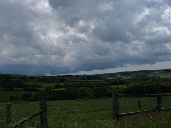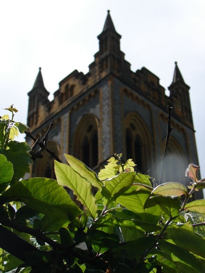 Buckfast Abby's spire, shortly before the heavens opened up.