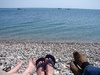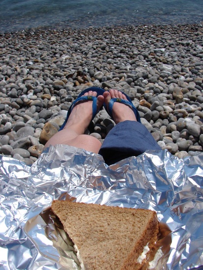 Chip Buttie and Cheese Sammy on Beer's pebbly beach