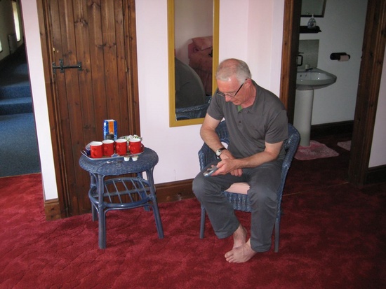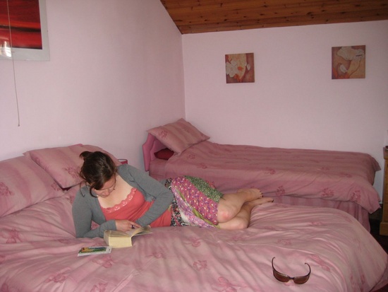 Gini catching up on Harry, as we take a rest at the second nights B&B - on a farm outside of Tavistock