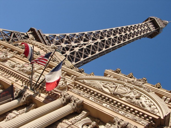 The Eiffel Tower pokes out of Paris casino