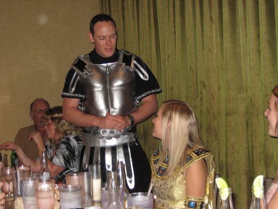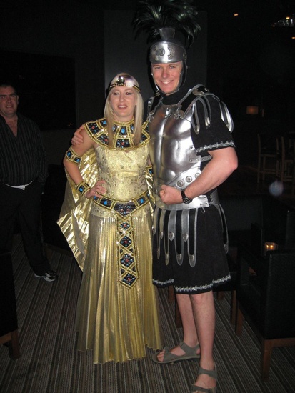 Dan and Jo - ahh, rather Mark Anthony and Cleopatra in their wedding outfits