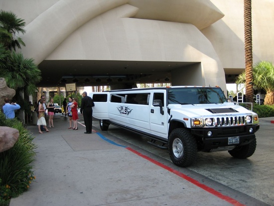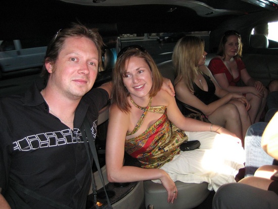 Piling into the stretch Hummer on the way to "a Little White Chapel"