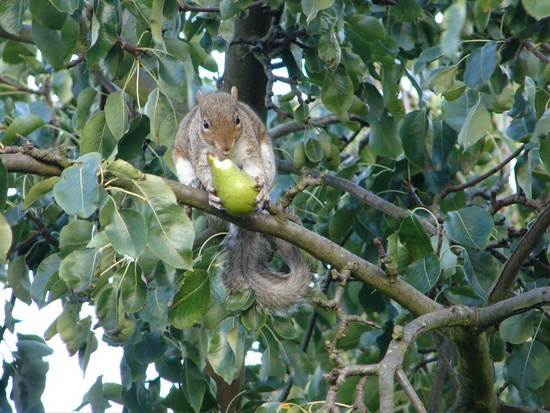 For weeks we have admired the lush pears growing just out of reach from our window, so today at least one of us is getting some and what a cutie!