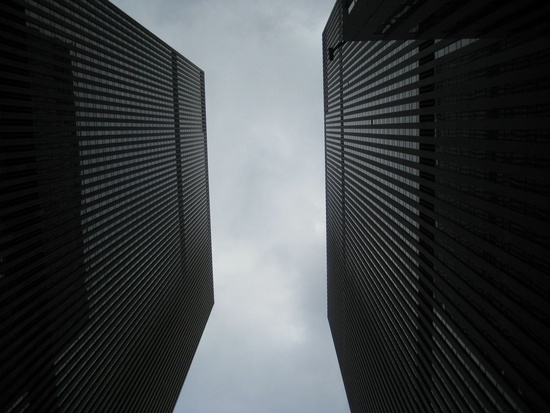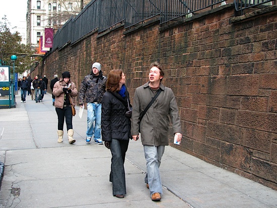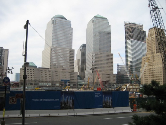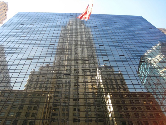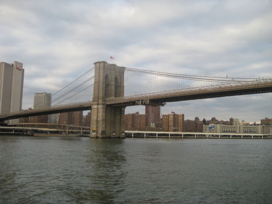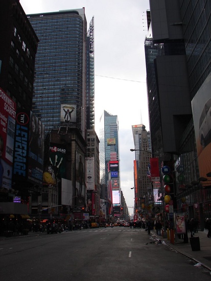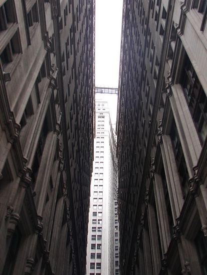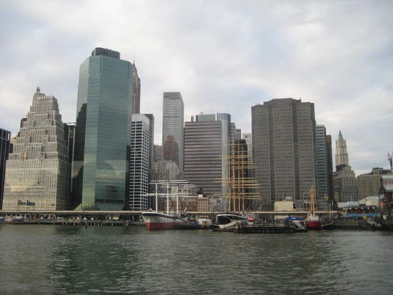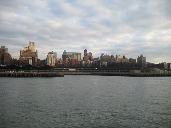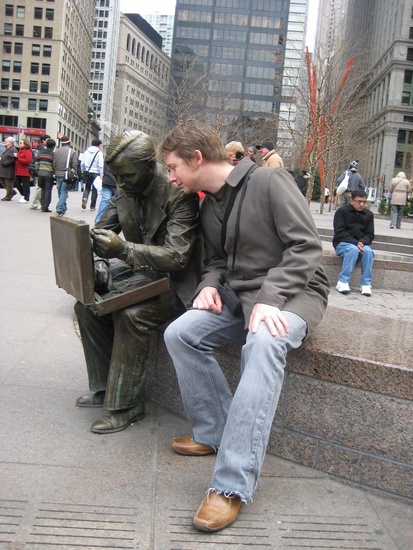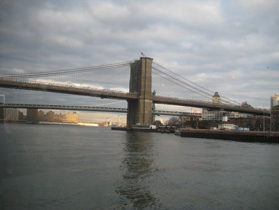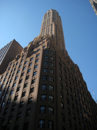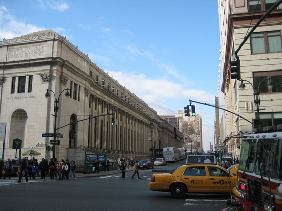 The Post Office with the inscription "Neither snow nor rain nor heat nor gloom of night stays these couriers from the swift completion of their appointed rounds" running the entire length of the massive building.