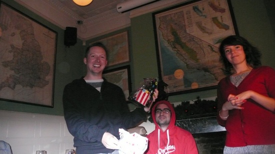 Tom recieves his Christmas Santa present at the Delete Christmas function