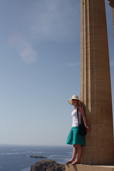 Lindos Ancient Roman ruins above the city, Turquiose sea below