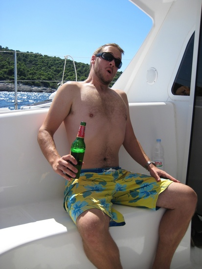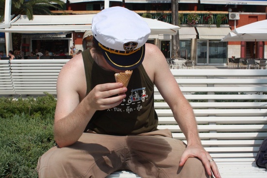 My ice-cream took a nose dive into my shorts. Hence the wet patch. Honest!
