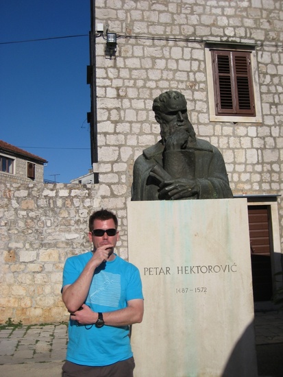 Hmm. Petar Hektorovic - a Croatian writer. At Stari Grad on Hvar island.