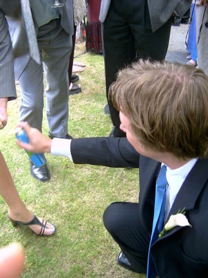 Tom with the fortunate job of Lady Leg Spraying (there were many an insect!)