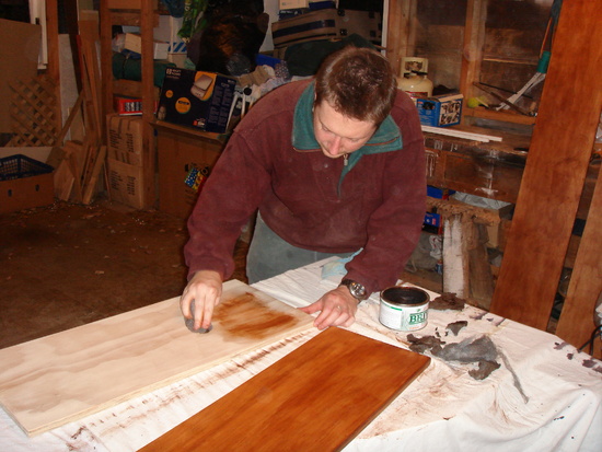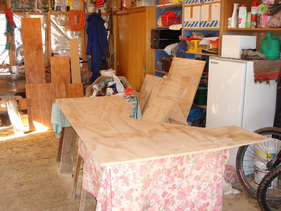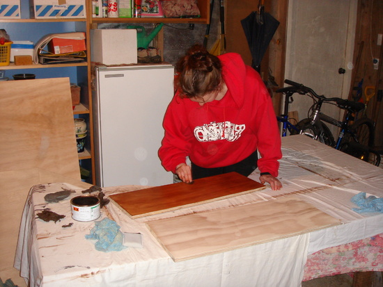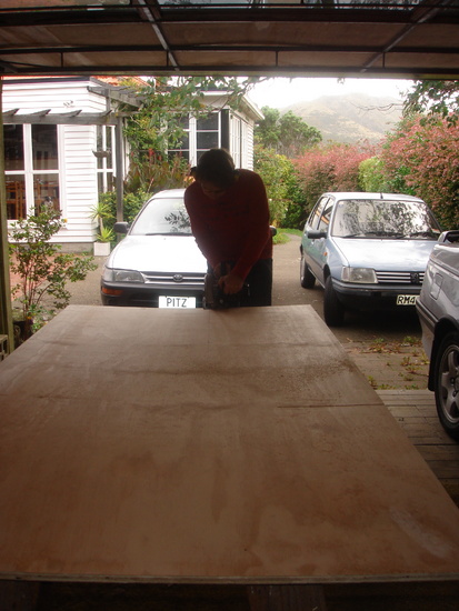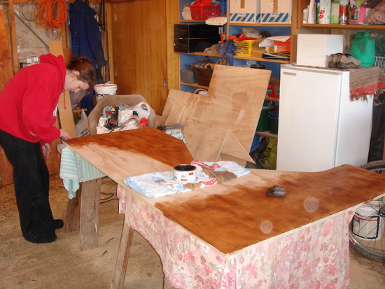Constructing the desk. Was quite scary drilling holes in the wood we spent so much time preparing!