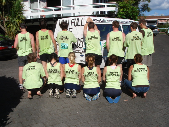 the whole team of B@stards running to the finish!