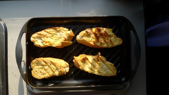Impressive looking, but unfortunately overcooked meat and seafood on a skewer.