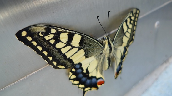 Colourful butterfly outside the aquarium