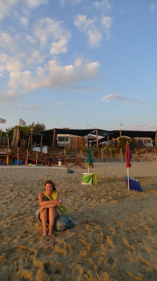 Enjoying a beer on the beach after a lovely swim - just over an hour until Napoli to meet JAM