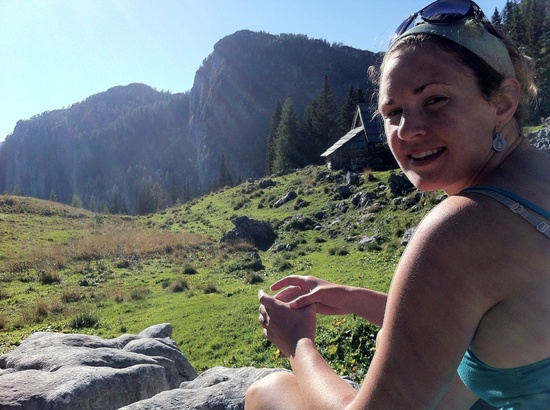 Enjoying our hot tea at the top of peak Visevnik after a lost then found hard trail up in the Julian Alps.