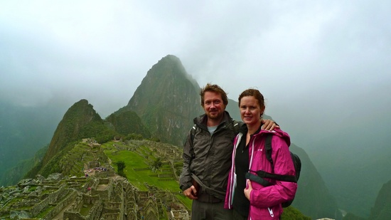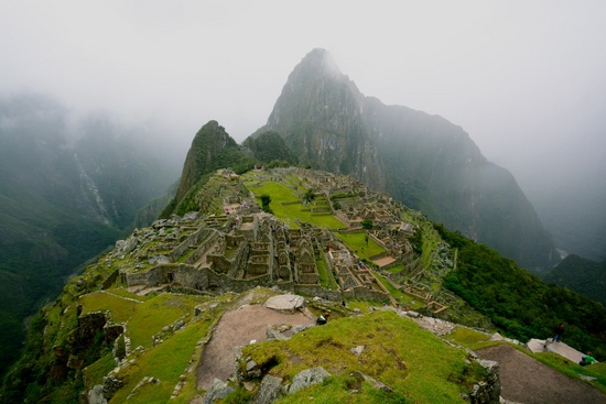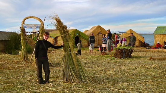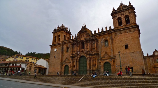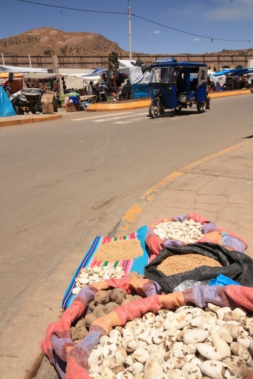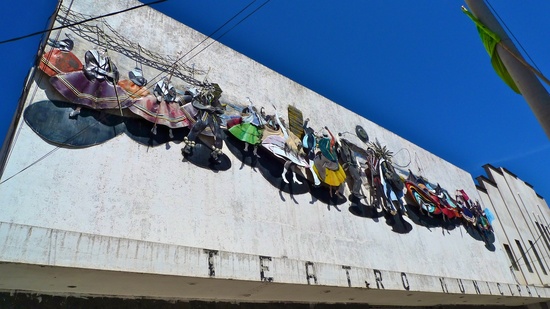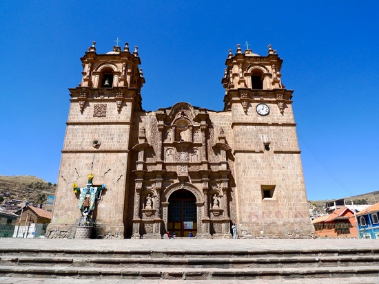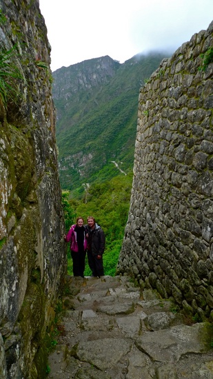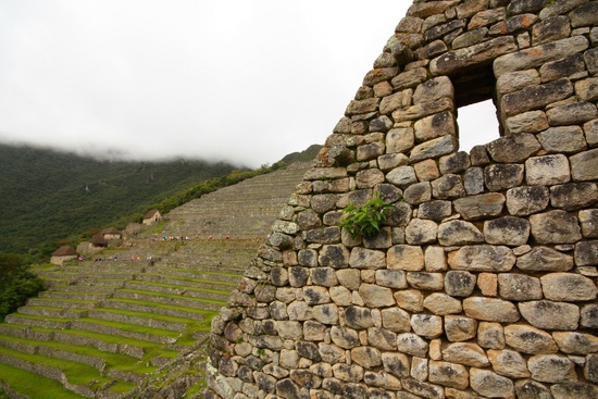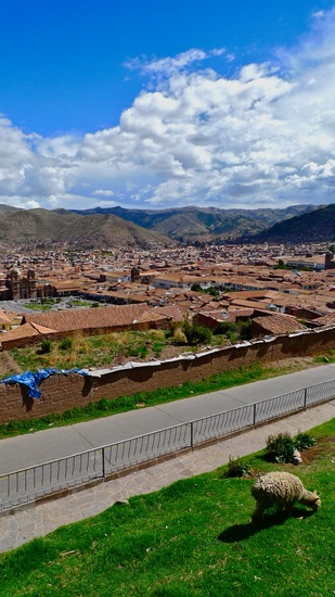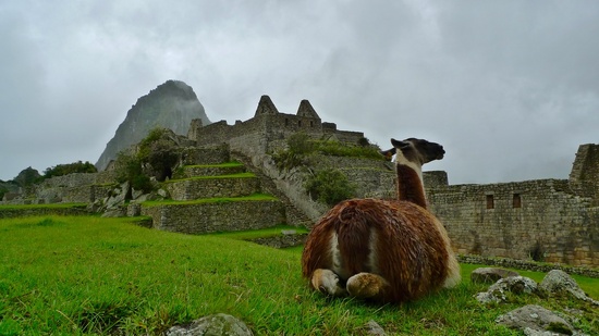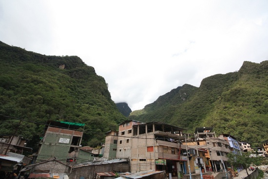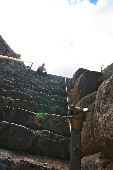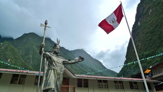 The fake statue made of spray painted plastic in Machu Piccu town's main square