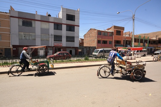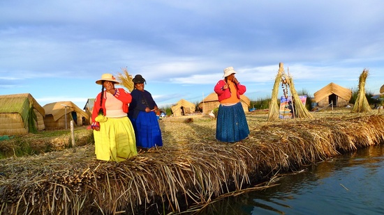 Peruvian's all in a row. Love the pig tails and bowler hats
