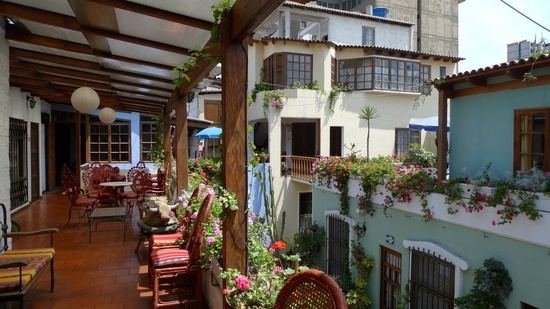 The inner courtyard of the Ninos Hostel I we stayed at in Cusco