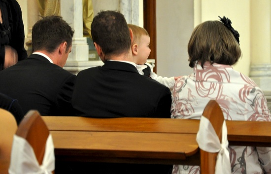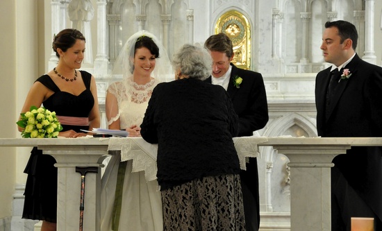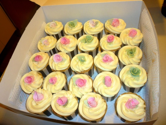 Uncle Peter looks on as Trish packages up the 100+ cupcakes