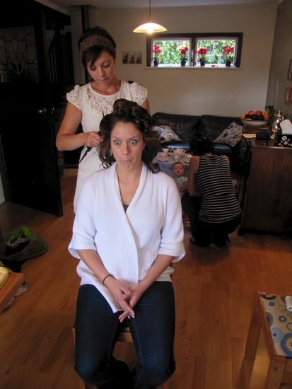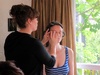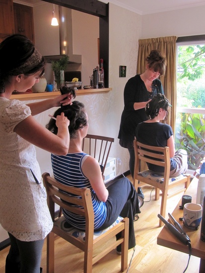 Lisa's hair is complete as Nat gets the royal treatment in the background