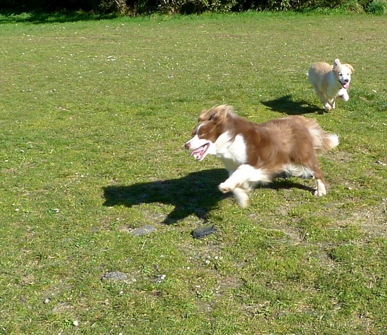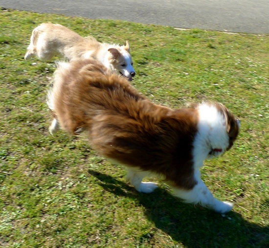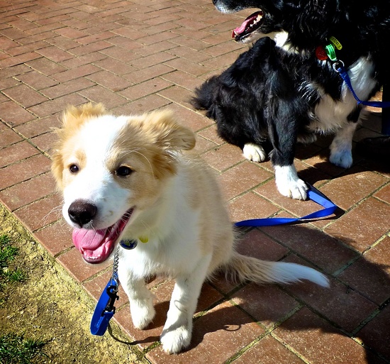 Today Lyon got to meet a 9yr old Border Collie called Elie (sp?). Lyon's got a way to go before he's Elie's size!