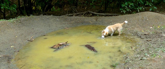 Lyon playing in a mud pool and looking pretty chuffed with himself afterwards!