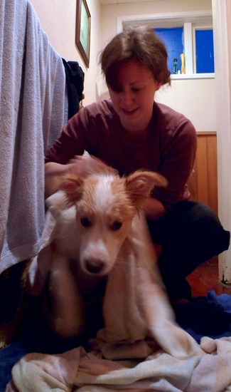 Just got hit by a crazy hail storm with hail the size of marbles … Lyon got caught in it going for a pee!