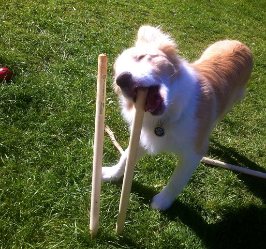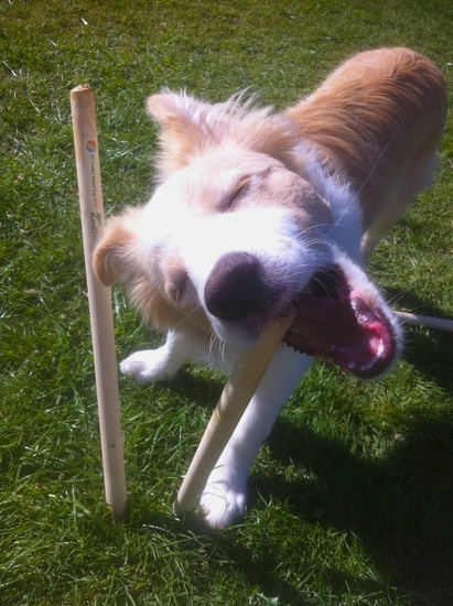 Lyon has no teeth at the moment, so instead of chewing his bones, he buries them, then later digs them up to try lick them again.