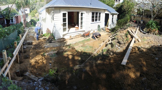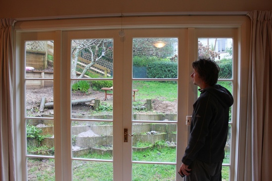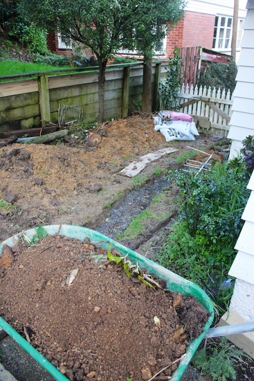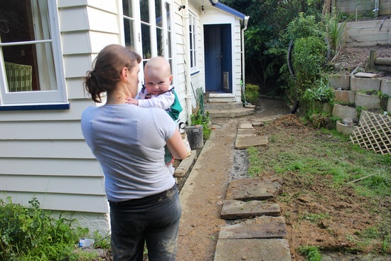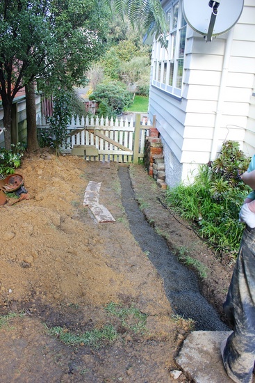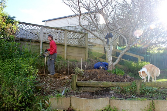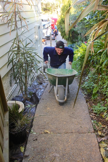 Jack hammering out the concrete slab where the washing line used to be