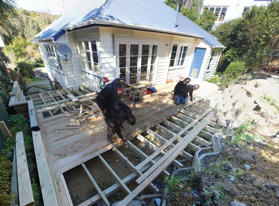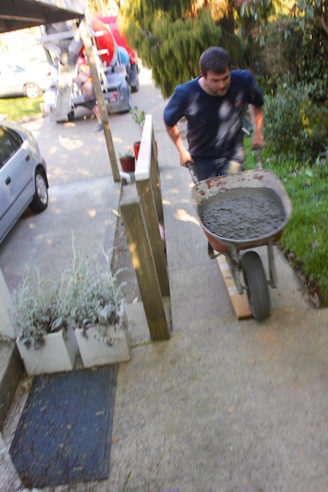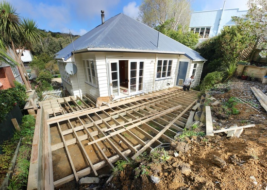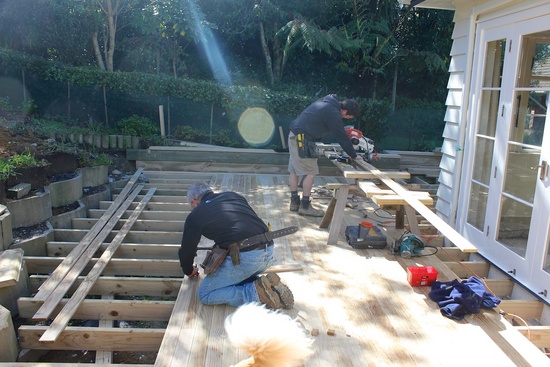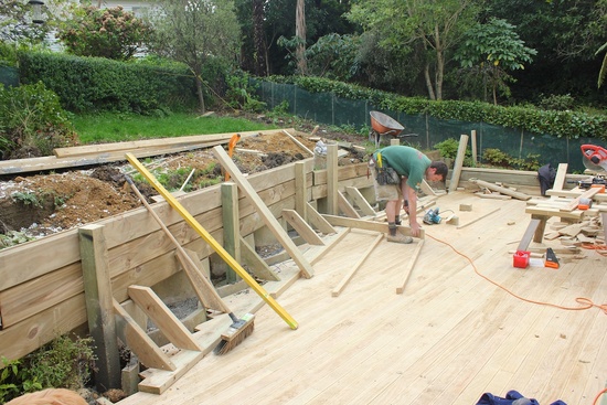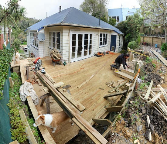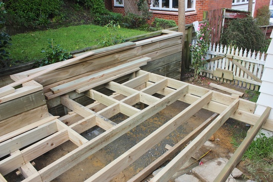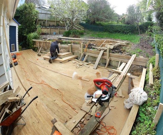 The deck construction begins. The old steps get destroyed.
