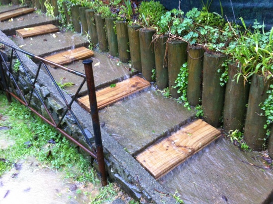 The torrential rain was gushing in from the neighbours