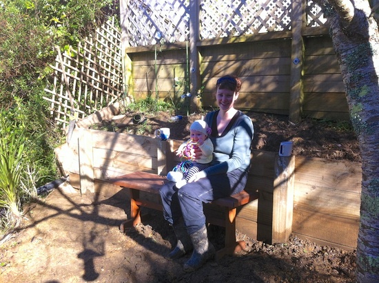 The retaining wall with it's new plants.