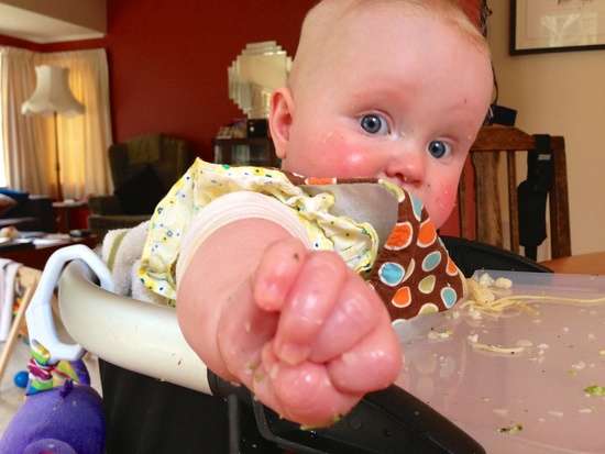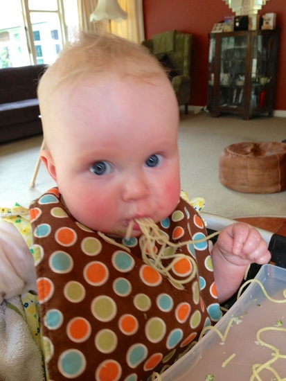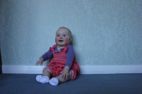7 Months old. Rolling, Sitting and eating really well, so proud.