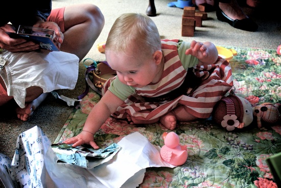 Olive gets her second early birthday present. A cool xylophone from Nan and Grandad.
