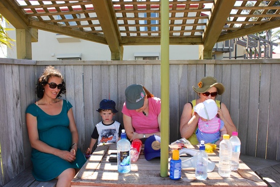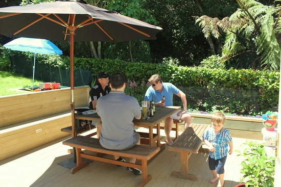 Burgers and sun at Lake Taupo on Pauls birthday.