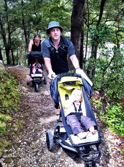 An hour and a half walk to the river along the Orongorongo track. Buggying all the way! lovely lunch and the kids were our entertainment! Olive ate Ants whole punet of raspberries in one sitting.