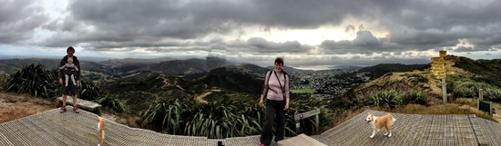A blustery pano from the top of Makara Peak! Quite a hike, but worth it for the views. And the croissant's.