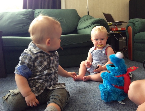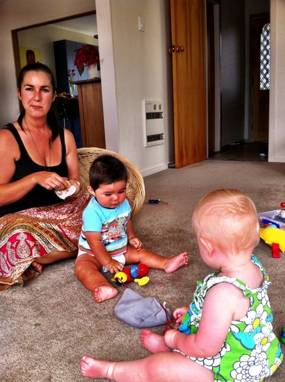 Olive plays with Louis (5months her junior but the same size) and leece at Anna's lovely new home!