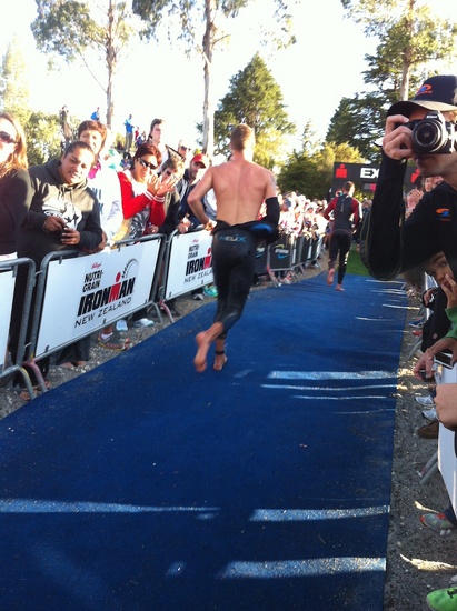 Dan finishes the swim leg of the Ironman