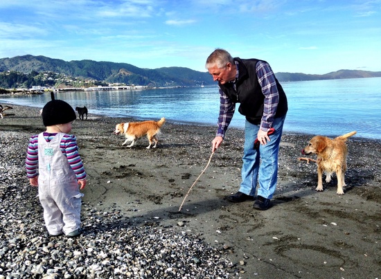 A lovely walk along Petone Beach with Granny (deedee) and Grandpa (poppop).