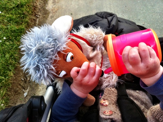Even though Olive hasn't been very well this past week she still looks after her soft toys. Womble wanted water on a walk, the whale seesaw likes gingerbread men, Lyon has to eat fabric leaves as well. Such a kind and caring wee poppet.