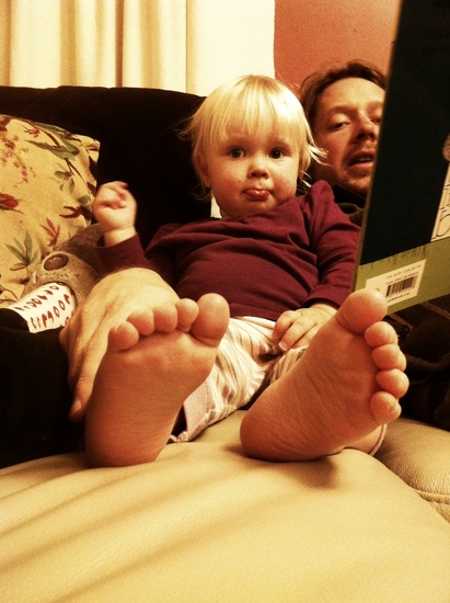 Enjoying story time on the new couch (Tom's parents old one) the lounge is coming along slowly. Most of the painting is done though!