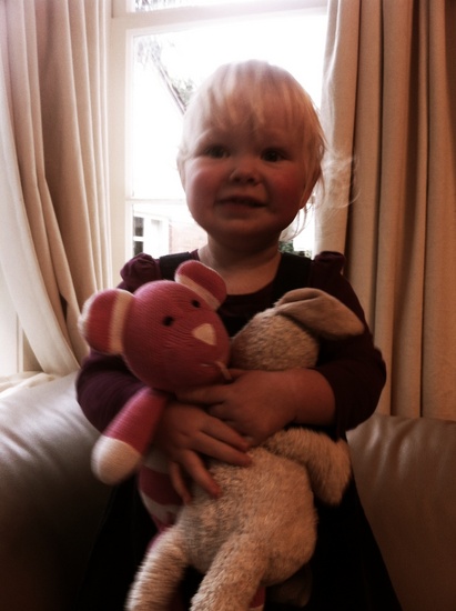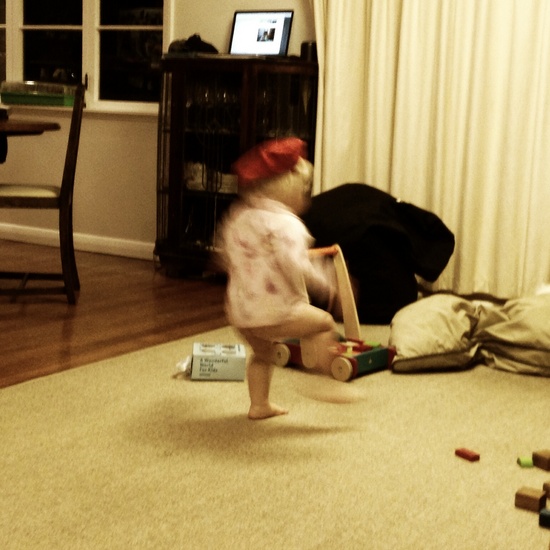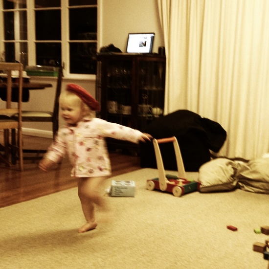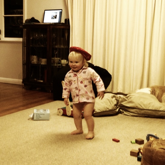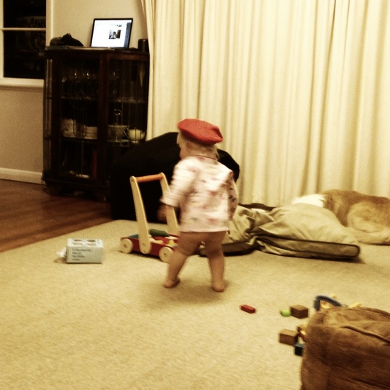 Our first dinner out with Olive. It went well and was delicious. Luckily the restaurant owner had a basket of toys to keep her amused.