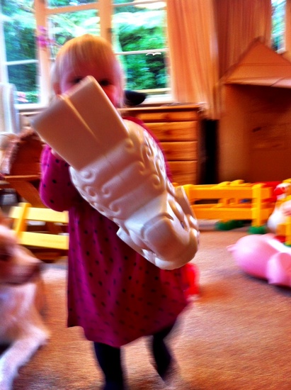 Olive has taken to wearing my shoes around the house, not sure why she couldn't wear a pair of my nicer shoes though!
