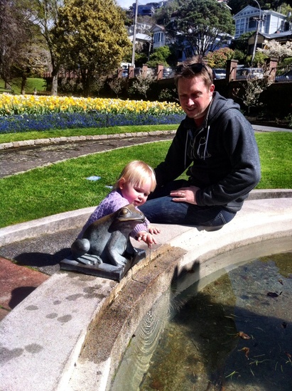 Birthday brunch turned into takeaway coffee & scone after Olive insisted on playing with the 'baby' ducklings. We checked out the beautiful but slightly battered tulips and Olive didn't want to leave the frog fountain either when it was time to go.