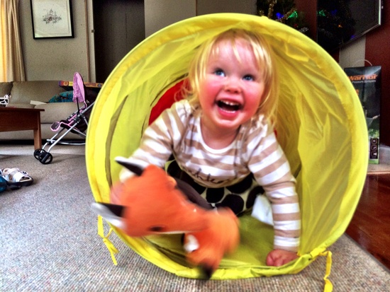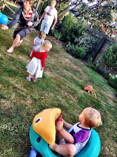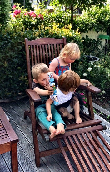 We were joined by the Thompsons for lunch in the sun. The kids had fun chasing Lyon and then hanging in his crate. Olive was so excited she decided not to nap today.